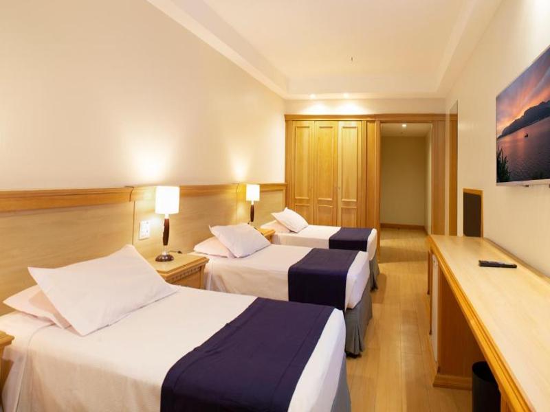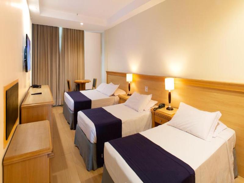 Feito para famílias e pequenos grupos, o Quarto Triplo Deluxe entrega uma estadia prática e confortável no Mar Palace Copacabana Hotel. O ar-condicionado mantém o ambiente sempre agradável, o frigobar ajuda na rotina com bebidas e lanches, e a TV LCD a cabo é um bom apoio para relaxar depois do dia. O banheiro privativo, com produtos de higiene pessoal, completa a experiência com mais conveniência.